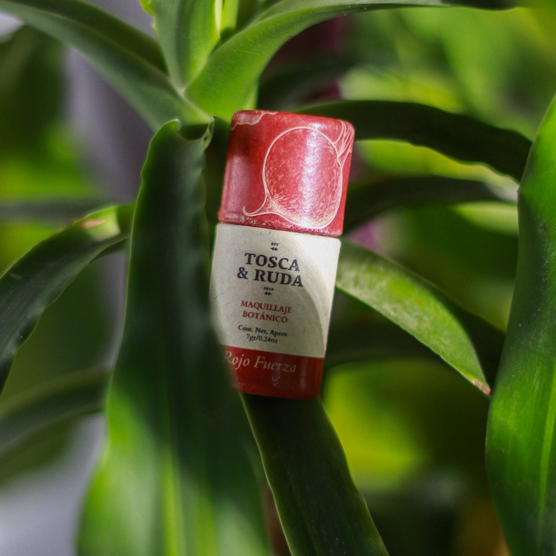 Nuestro Maquillaje botánico ROJO FUERZA clásico está formulado a base de cera de candelilla y mantequilla de mango y tiene propiedades hidratantes, emolientes, suavizantes y regenerantes.